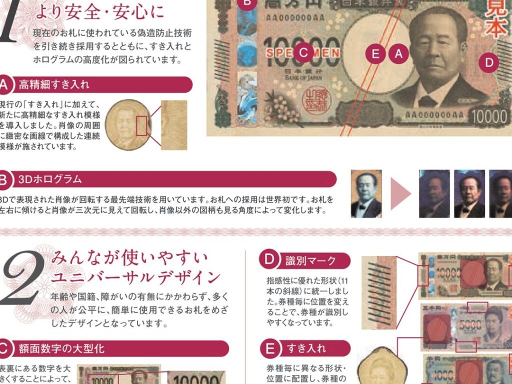 新紙幣には、視覚的な魅力を高めるさまざまな変更が加えられています。ここでは、主要なデザイン変更点を詳しく見ていきます。