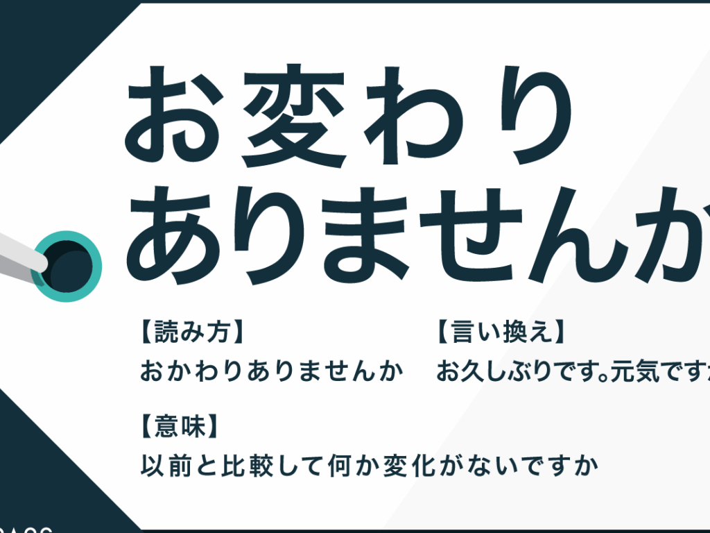 - 同僚と数ヶ月会っていないときに、「お変わりありませんか?」と尋ねる。