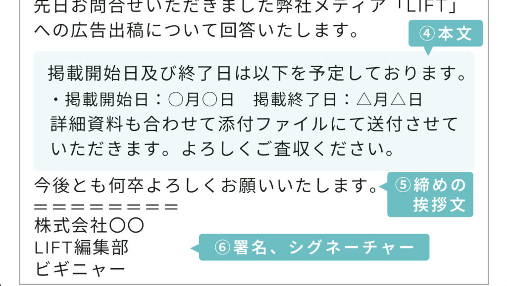 - 相手にメールやメッセージを送る際に挨拶文を記載する。