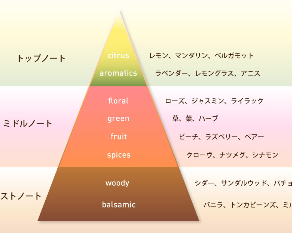 - 香りのタイプを理解する。 フローラル、オリエンタル、シトラス、ウッディなど、香りの種類を知っておくことが大切です。