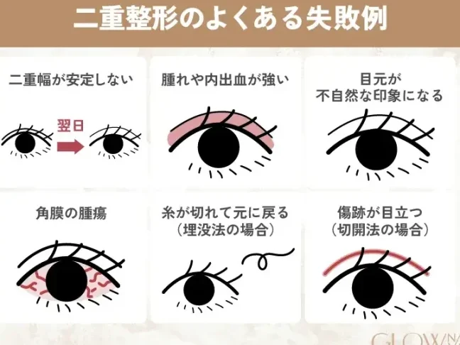 - 二重の不均一性が生じることもあります。 片方の二重幅が他方と不揃いになる可能性があります。