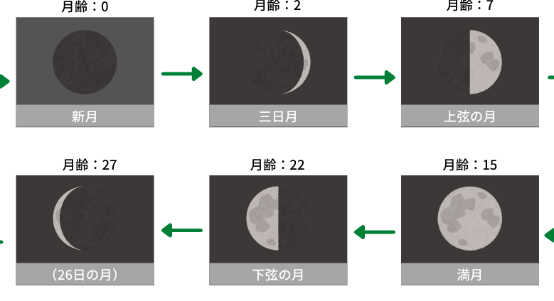この周期は約29.5日で、一ヶ月に一回のサイクルで変化します。