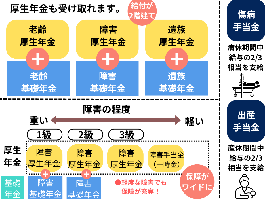 - 給付内容の充実:医療・年金の保障内容を強化。