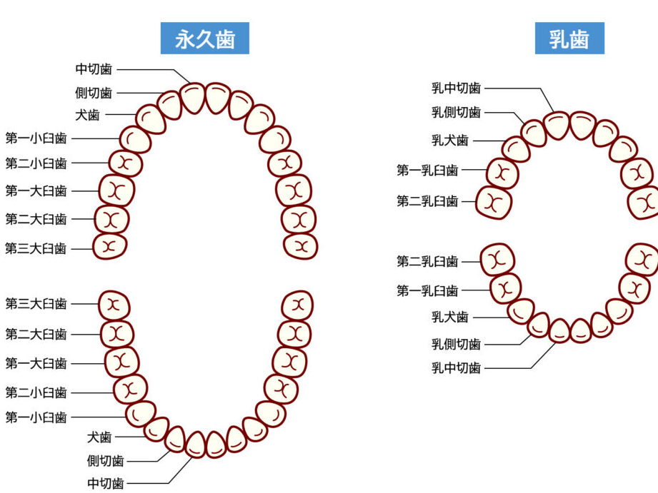 - 数の違い: 乳歯は通常、20本で、永久歯は32本。