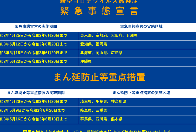 緊急事態宣言が発令された際には、さまざまな対策が実施されます。これにより私たちの生活や活動に多くの変化がもたらされます。以下に、主要な対策項目を詳しく見ていきましょう。