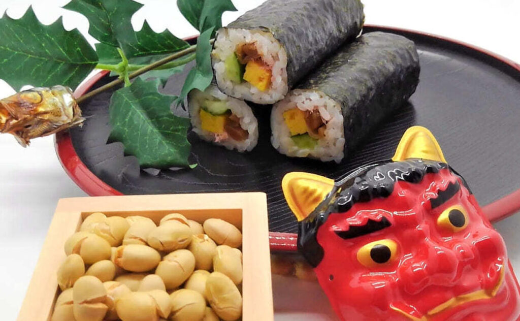節分の日に食べる伝統的な料理には、太巻き寿司などがあります。最近では、特に恵方巻きが人気です。