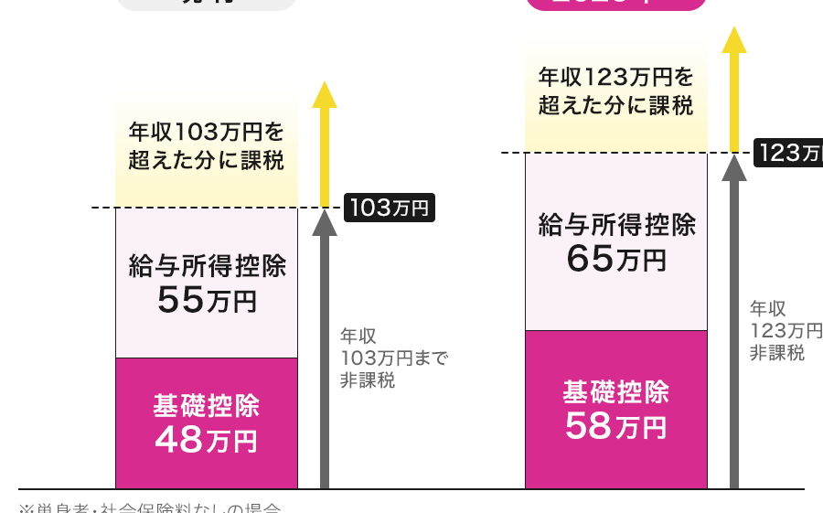 - 配偶者控除制度の所得制限が見直され、受けられる控除額が変化する。