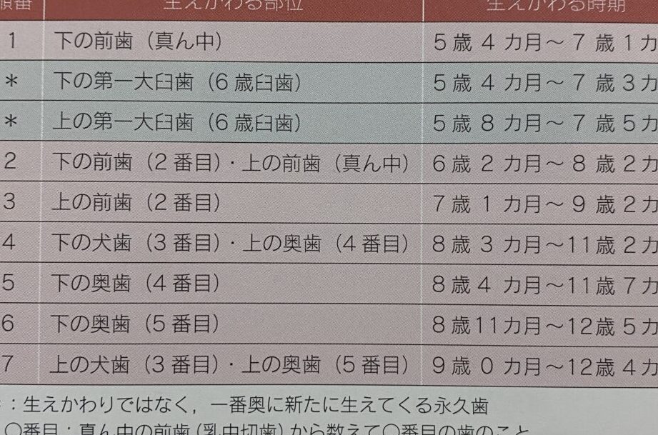 - 最初に前歯が抜け、次に奥歯が生え変わることが多いです。