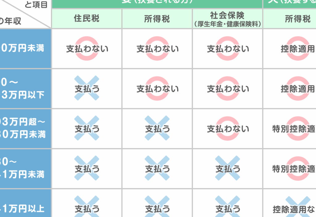 - 税金の軽減:扶養に入ることで、所得税や住民税の負担が減少する。扶養控除により、課税所得が減るため、結果として税金が低くなる。