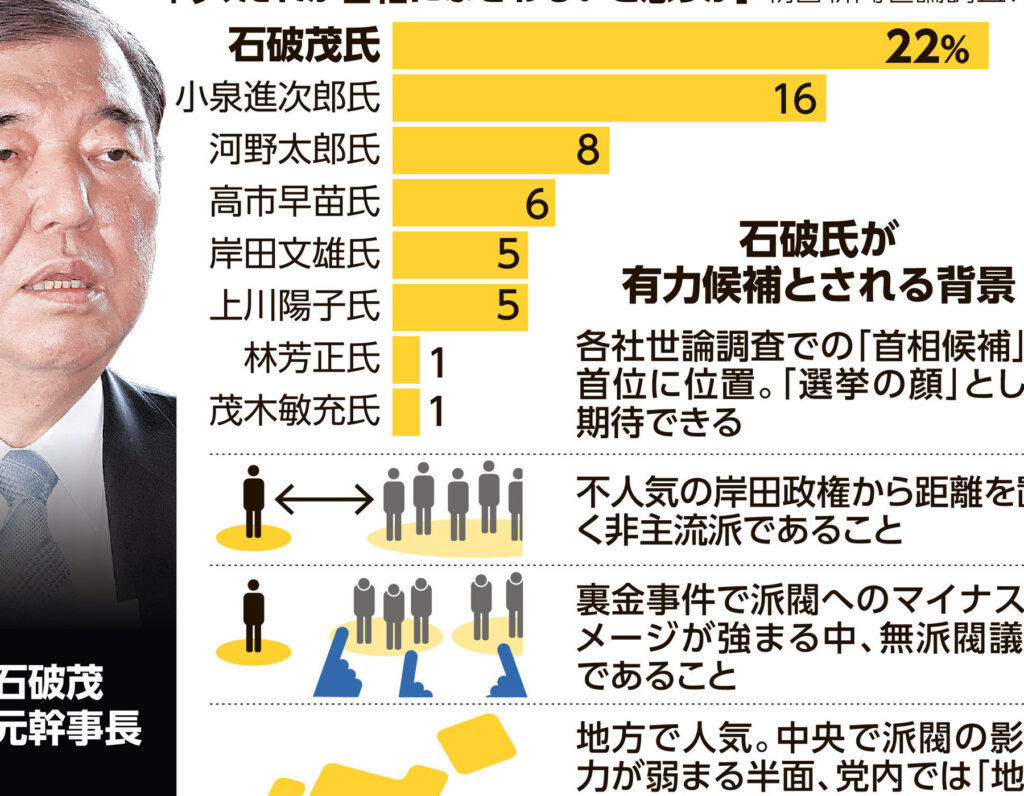 - 河野太郎氏: 自民党内で人気が高く、改革的なビジョンを持つ。