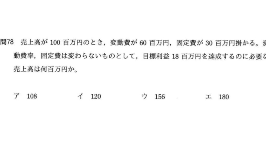 目標利益を達成するためには、売上高や費用の理解が不可欠です。ここでは、売上高100百万円、変動費60百万円、固定費30百万円という条件で、目標利益18百万円を達成するために必要な売上高を計算します。