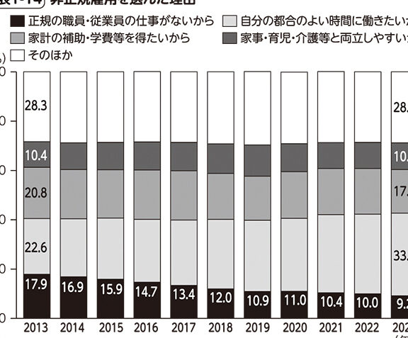 非正規雇用が選ばれる理由は、過去10年間で変化してきました。私たちは、この変遷を理解することで、現代の働き方に対する認識を深めることができます。