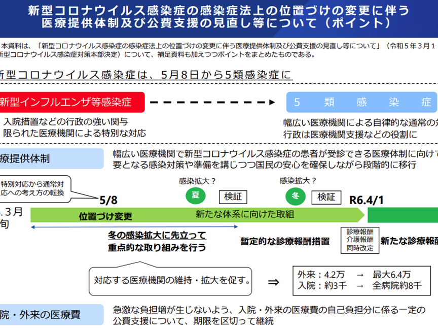 - 感染症の分類変更: 新しい分類「5類」により、病気の取り扱いが変わります。