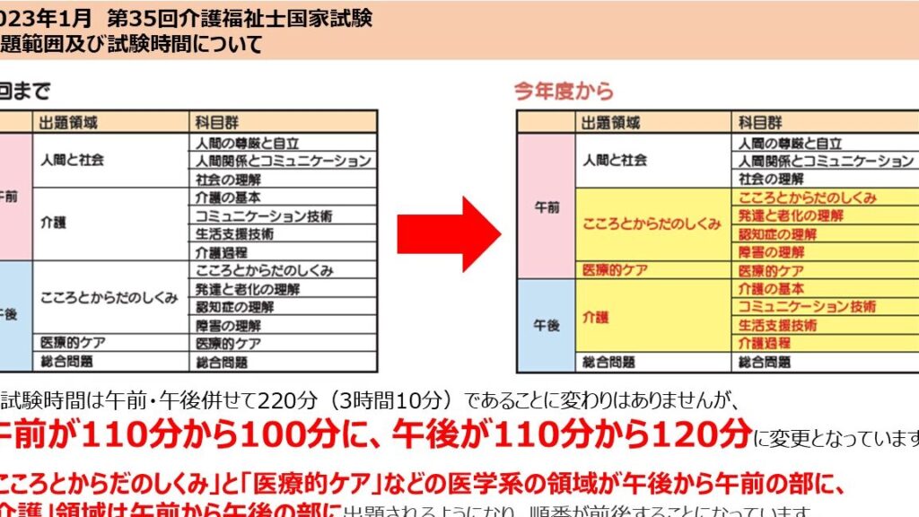 2023年の介護福祉士試験では、いくつかの重要な変更がある。受験者はこれらの変更を理解し、準備を整える必要がある。以下に、試験内容の変化と試験形式の変更について詳しく説明する。