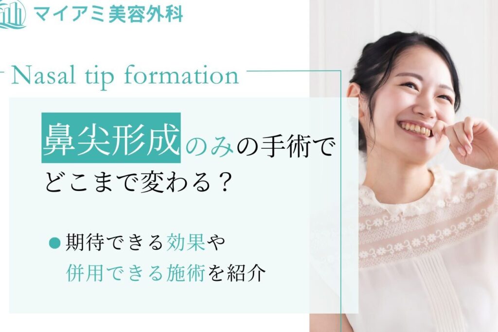 - 鼻尖形成術(びせんけいせいじゅつ): 鼻先を整える手術。余分な脂肪を除去し、形を整えます。