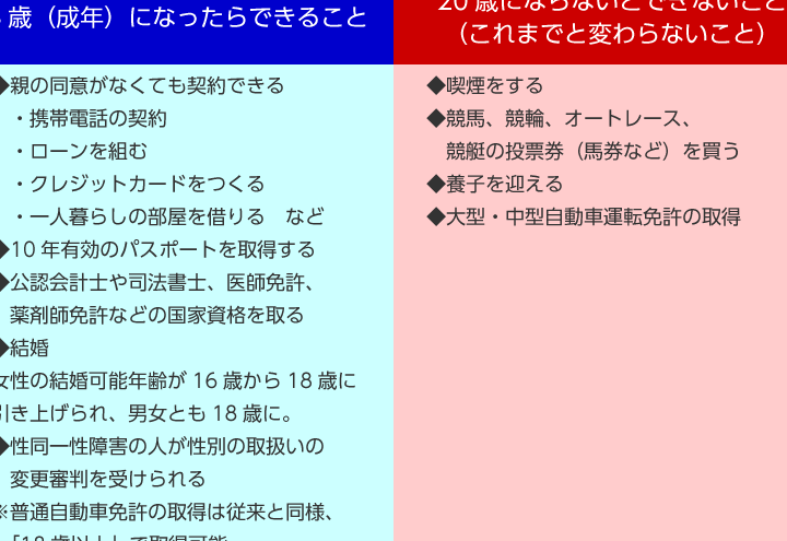 - 2022年4月1日、新しい成人年齢が施行される。