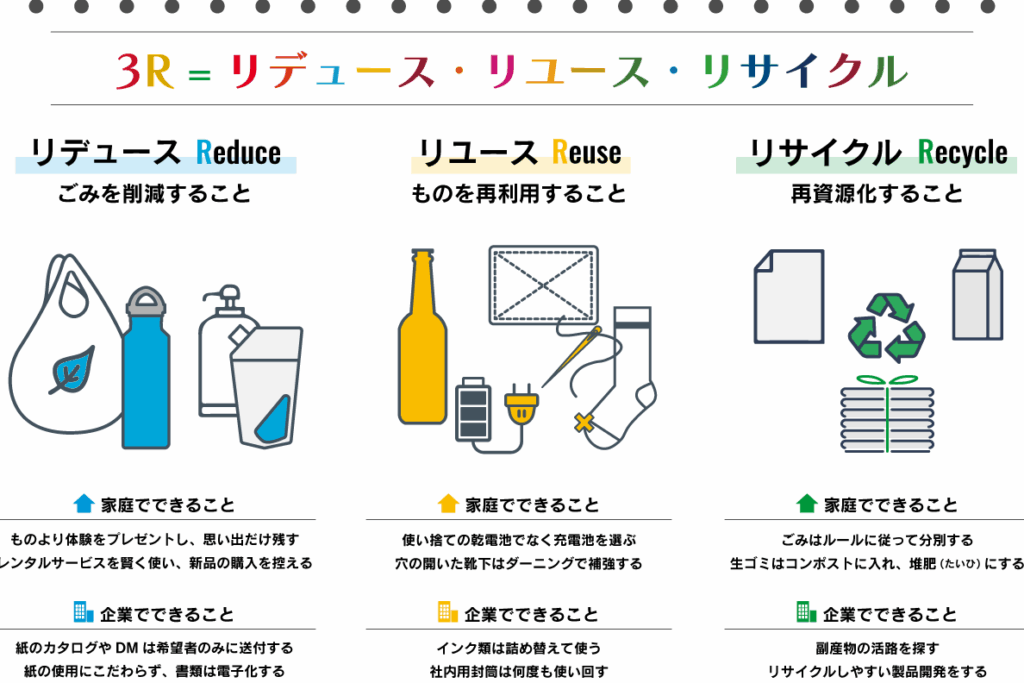 - 廃棄物削減: 資源ごみの分別と再利用により、埋立地を減少させます。