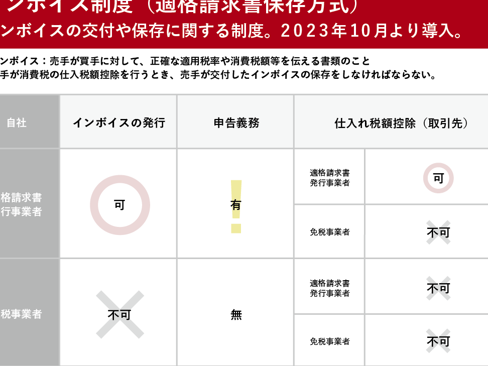 - すべての事業者が対象。小規模事業者でも、インボイスを発行する必要がある。