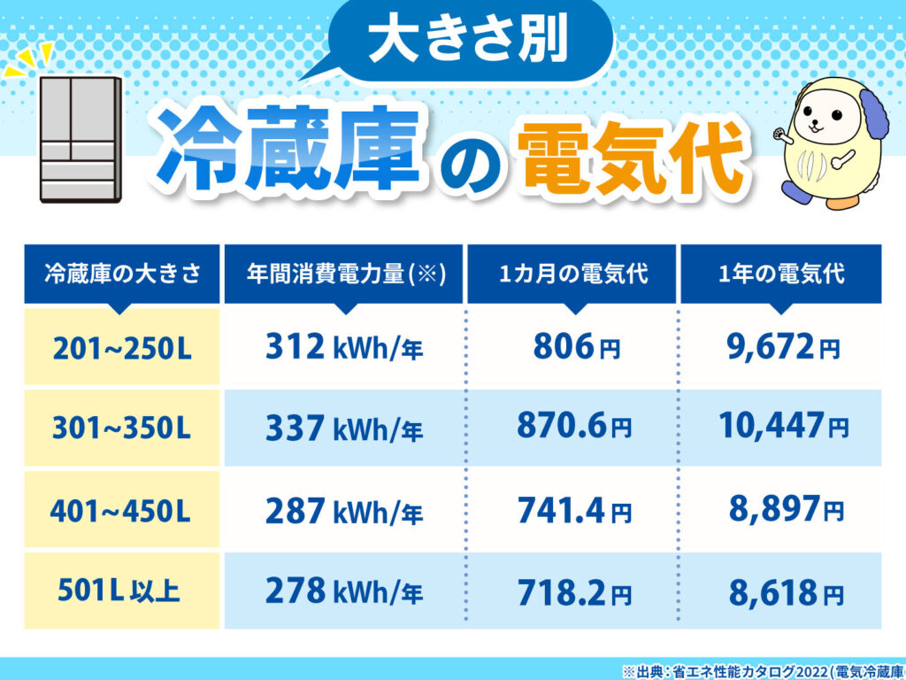 - 電力消費量の確認: 冷蔵庫の毎年の消費電力を確認します。通常は200〜600 kWh程度です。