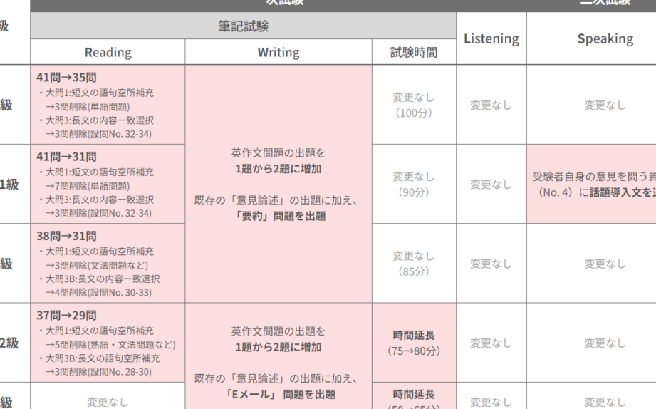 - 試験内容の見直し: 英検は、受験者の実力をより正確に測るために試験内容を見直します。