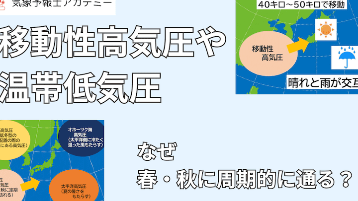 - 高気圧の場面では、晴天が続く。つまり、温暖で穏やかな気候が保持される。