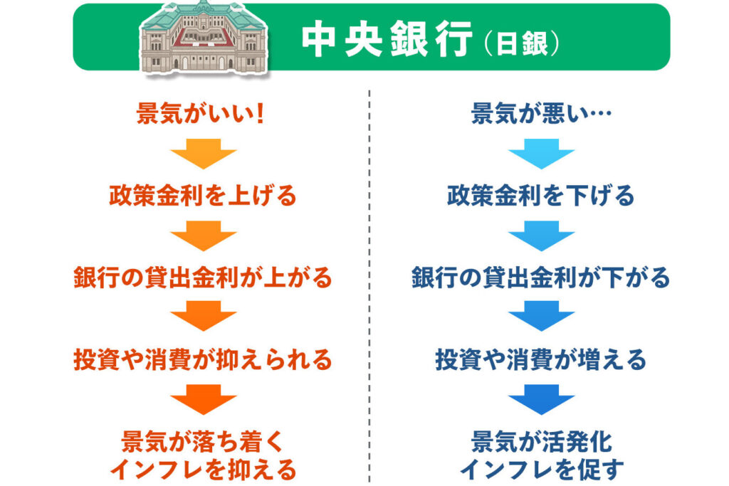 - 中央銀行の金利政策: 中央銀行が利上げや利下げを行うと、直接的に金利が変動します。例として、アメリカの連邦準備制度が挙げられます。