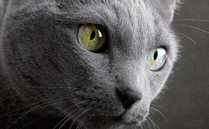 - 目の色: ロシアンブルーの目は、最初は淡い青色ですが、成長するにつれて明るいエメラルドグリーンに変わります。