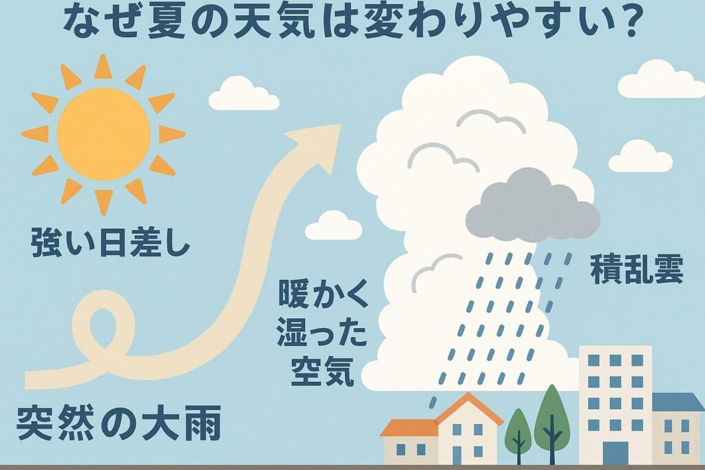 - 対流の作用: 温められた空気が上昇し、冷たい空気が下降します。この対流現象が積乱雲を形成します。