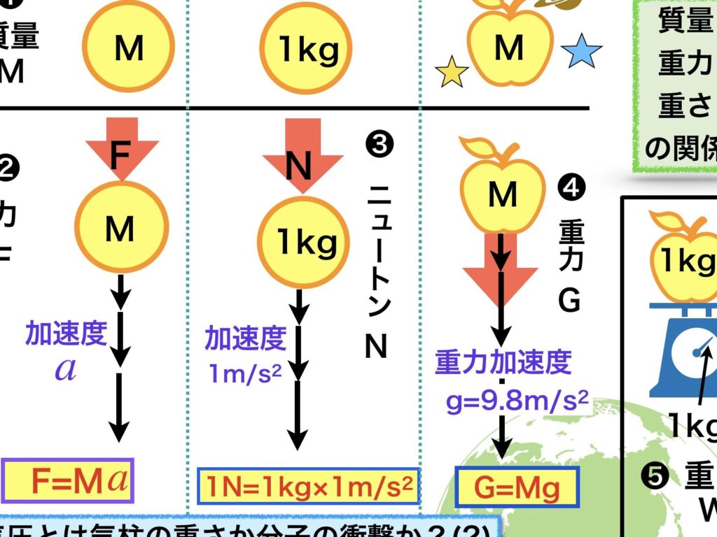 - 物体の質量に応じて重力は変化します。