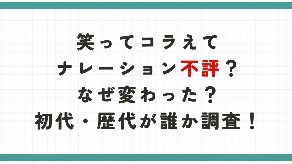 私たちが愛してやまないテレビ番組「笑ってコラえて」。その魅力の一部は、独特なナレーションにあります。しかし最近、「笑ってコラえて ナレーション 変わった なぜ」という疑問が浮かび上がっています。視聴者の心をつかむためにどのような変化があったのでしょうか。