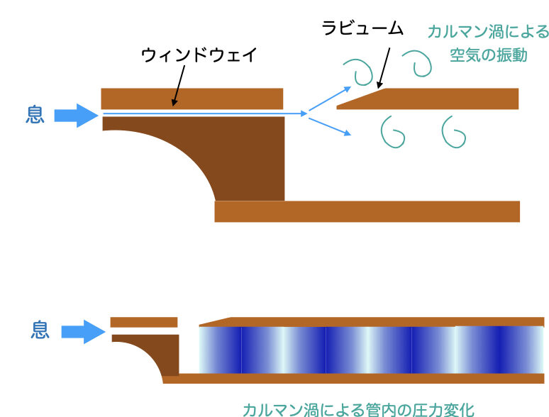 - 息の強さ:強弱で音色が変わる。