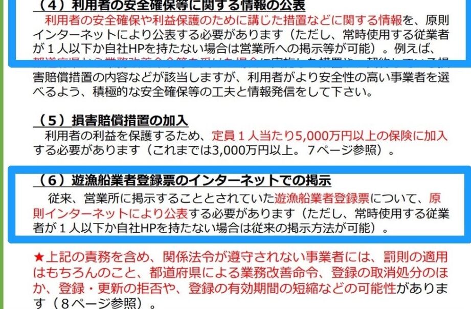 - 新しい規制基準の導入: 遊漁船の運航には、より厳しい規制が設けられる。これにより、安全基準が向上します。