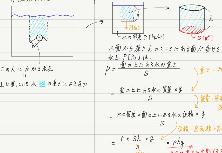- 水の深さ: 深くなるほど、水圧は増加します。例えば、海底では数十メートルも下に行けば、圧力が大きくなります。