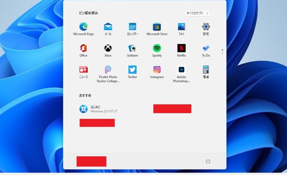 - スタートメニューが中央に配置され、シンプルさを追求したアイコン表示になりました。